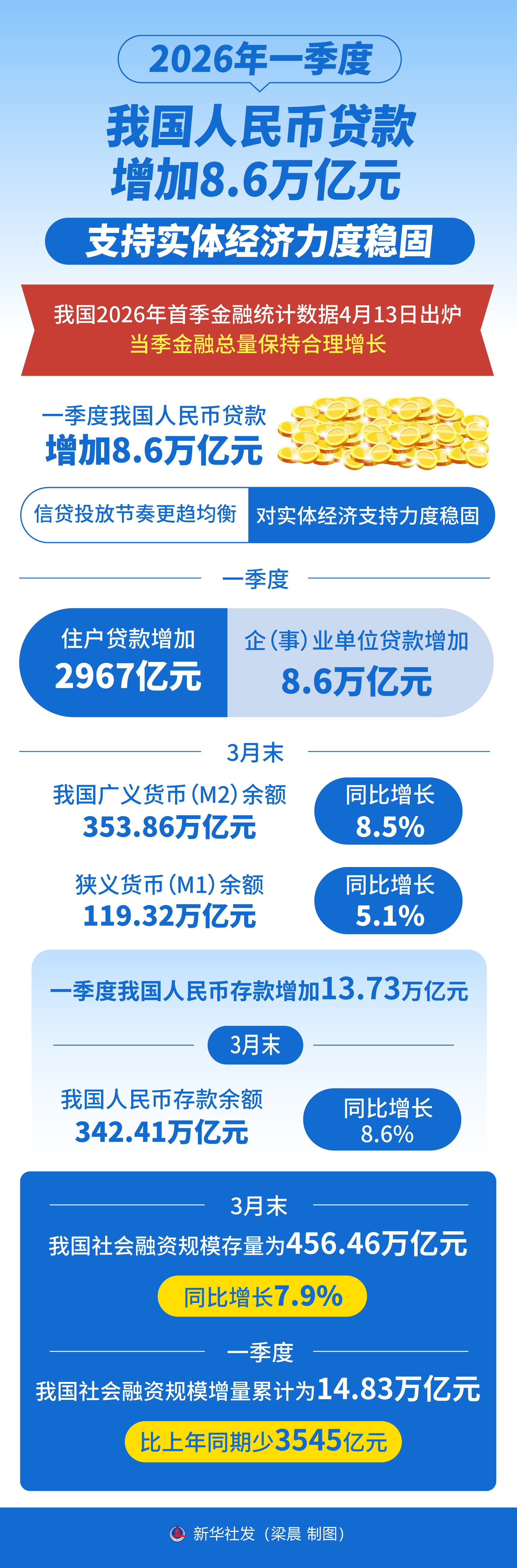 2026年一季度我国人民币贷款增加8.6万亿元 支持实体经济力度稳固